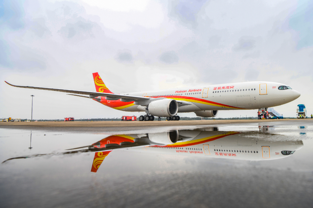 海南航空一架全新客机顺利降落在海口美兰国际机场股门在线。苏弼坤 摄
